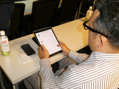 第2部では、スマホを使って実際にTeachme Bizを体験。参加者は動画撮影を行い、マニュアル作成に挑戦した。